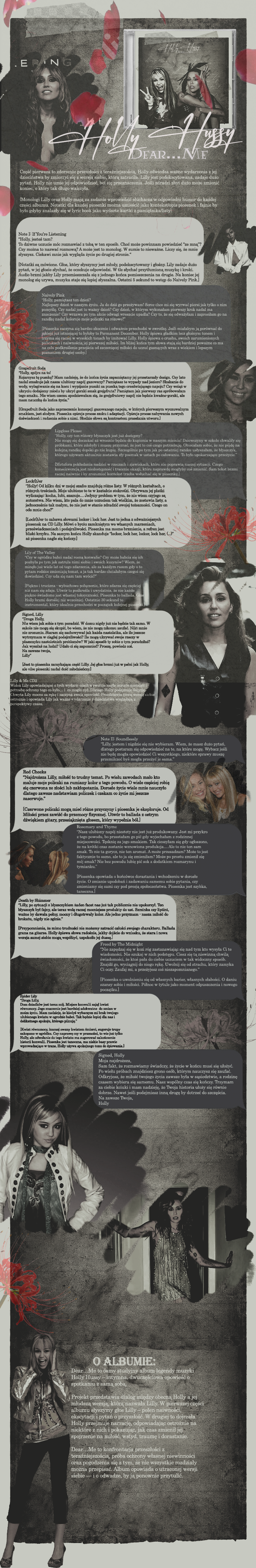 : Oczywiście, że nasz ponury duet znalazł się na finalnej trackliście. W ogóle nie ma związku z tym fakt, że to obecnie song na świecie… wogóle! No, ale coś bądźmy szczerzy.. każdego dopada czasami ponura niedziela i chłód od okna, dlatego ludzie pokochali nasz utwór… 🖤 Dziękuję za piękny komentarz, jesteś ogromną częścią życia Holly i w ten album też masz duży wkład. Prawie tak duży jak Pozwól żyć w karierę Gosi… Co do grafiki to dobrze wiesz, że szło mi to jak Edycie Górniak przyznanie się do błędu, ale chyba jakoś wyszło… buziaki, kckckcckkc, Szo?