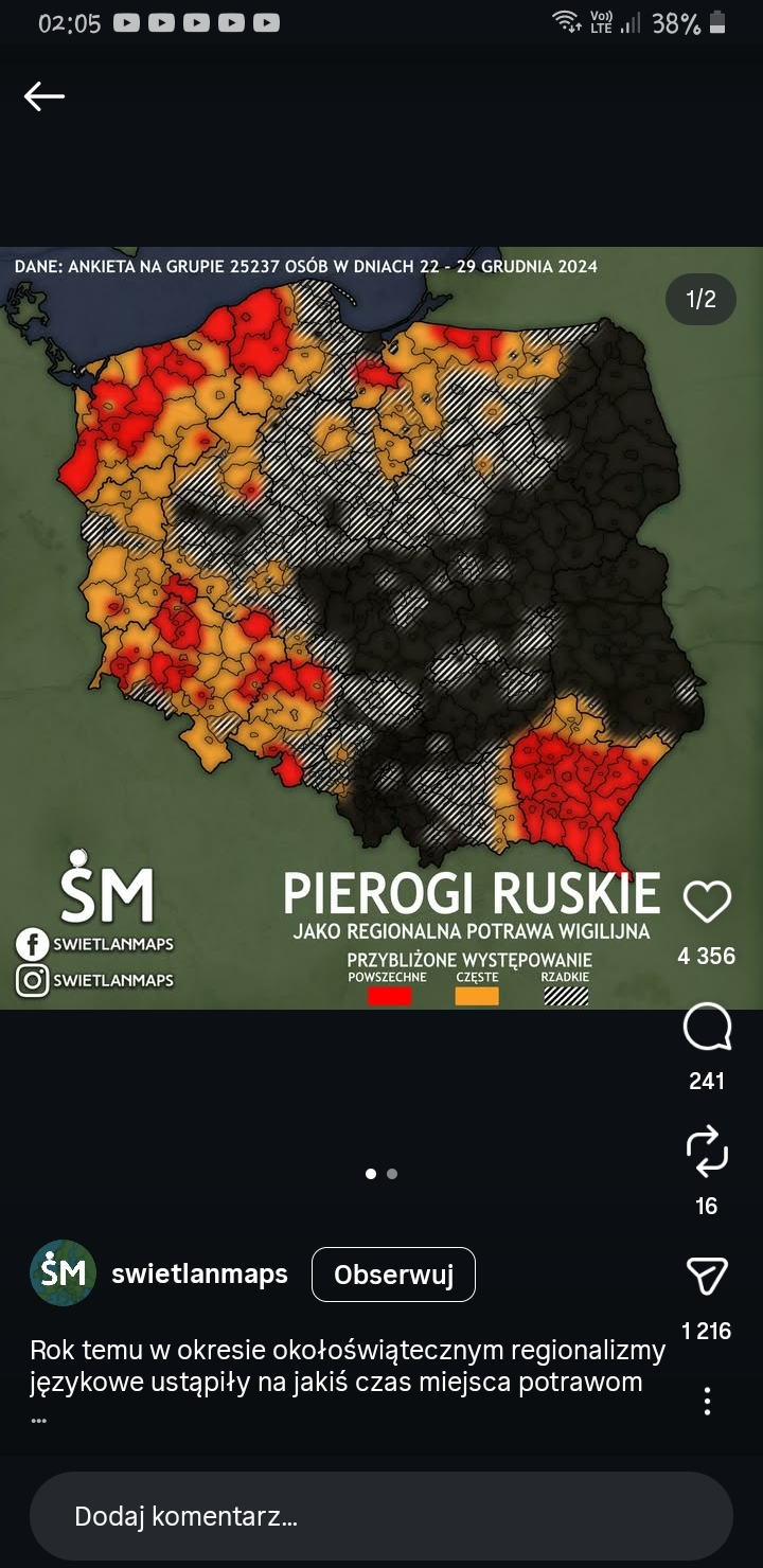 Trafiłam na poniższą grafikę na IG i dosłownie tak mnie ona zaskoczyła, że postawiłam spytać się o Waszą opinię. Pochodzę z jednego z regionów, gdzie pierogi ruskie na wigijnym stole są obecne, a mają pierwszą myślą było ,,Jak to tak Wigilia bez ruskich?" Jesteście team pierogi ruskie na Wigilii czy też nie?
